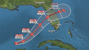 - El sistema alcanzó la categoría 5 cerca del mediodía del lunes y este martes avanzaba con categoría 4 hacia el oeste de Florida.