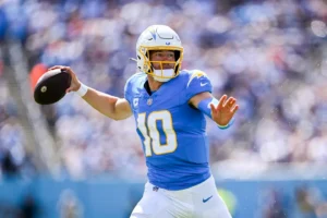 El mariscal de campo de los Chargers de Los Ángeles, Justin Herbert.